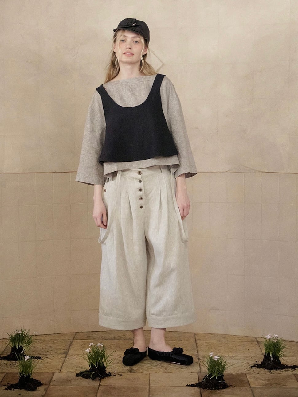 シンプルな中に、リネンならではの素朴な風合いと軽やかさが感じられるデザイン。