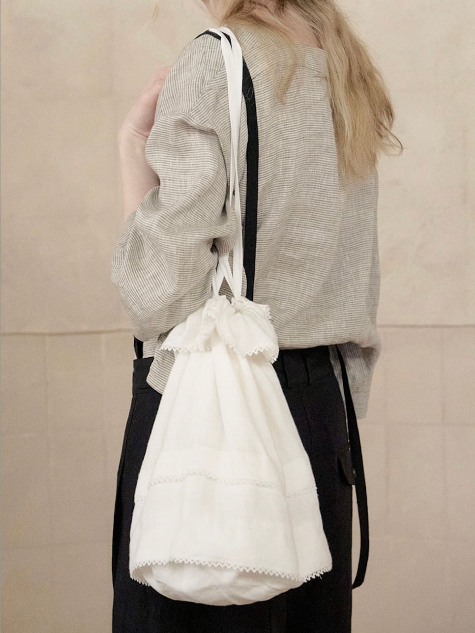 リネン素材で仕立てた「Paddington Lace Pochette」。