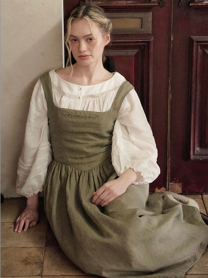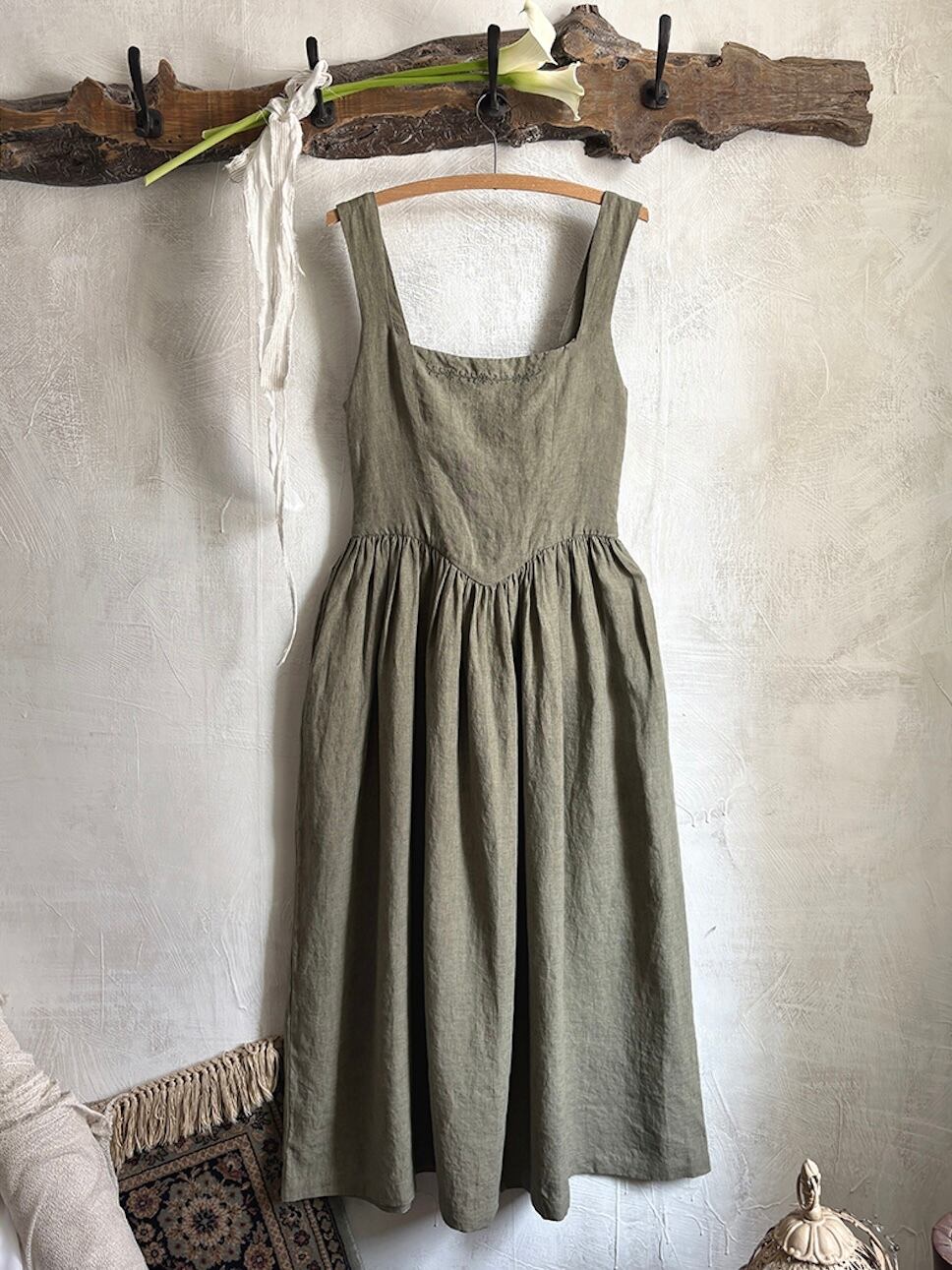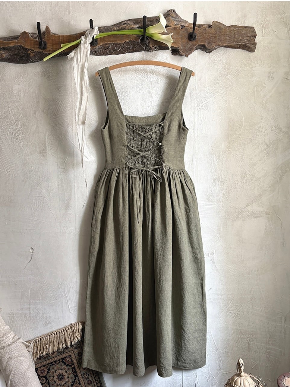 リネン素材で仕立てた「Camille Lace-up Dress」。