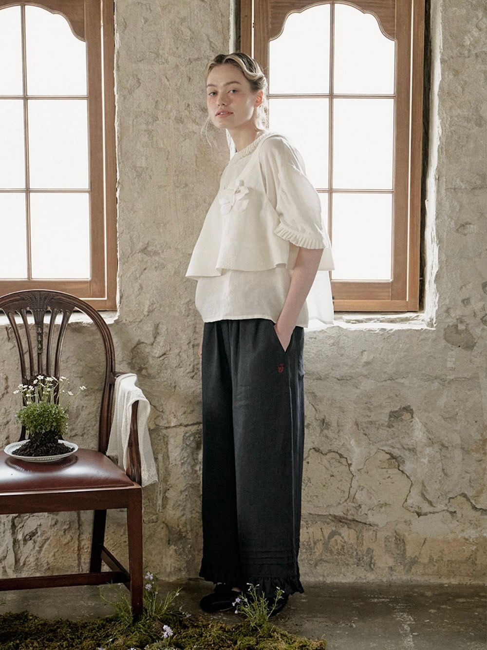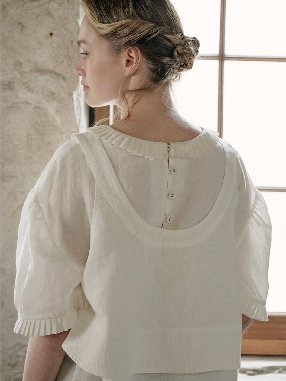 動きに合わせてしなやかに揺れるリネンの風合いが、