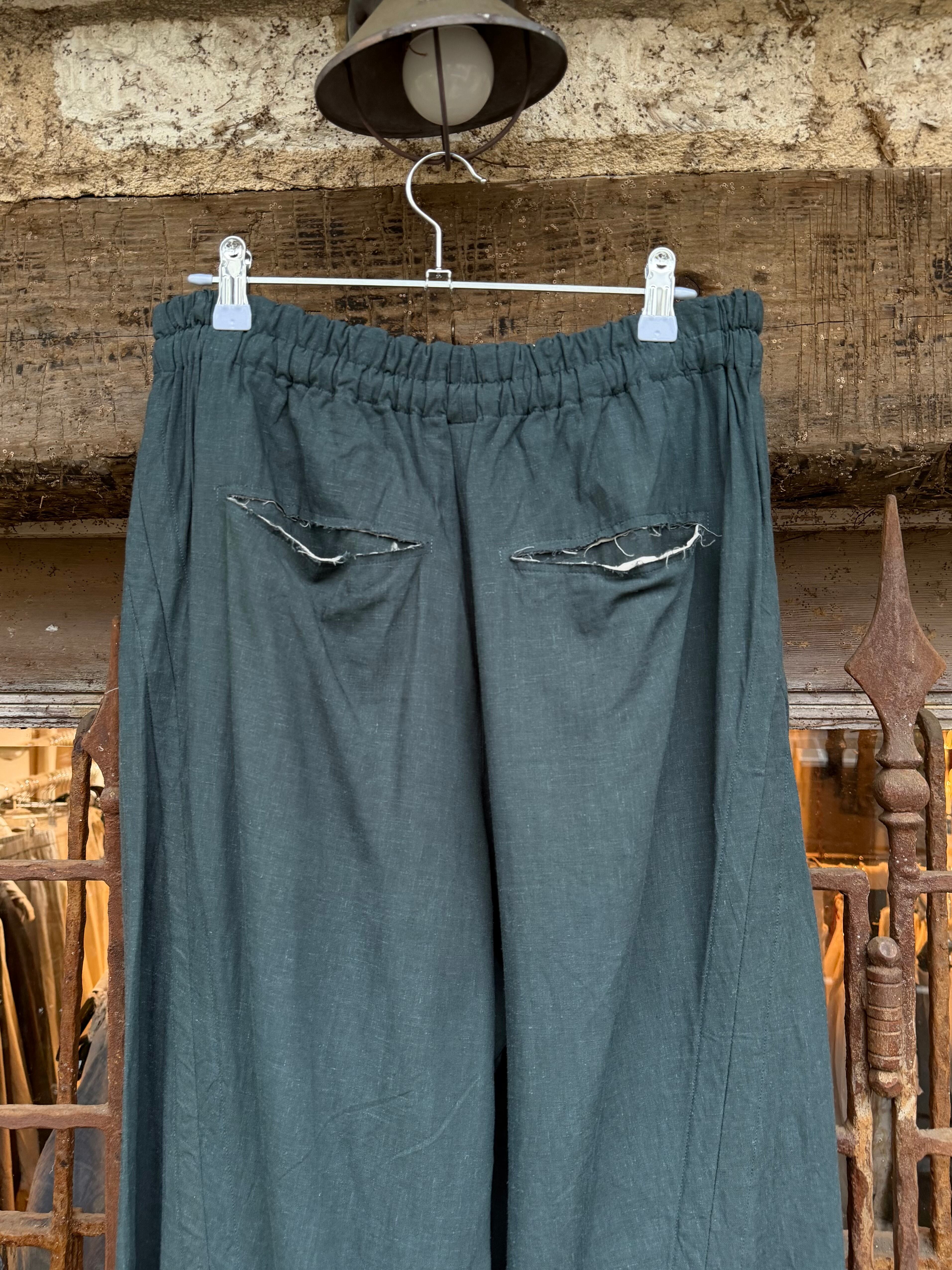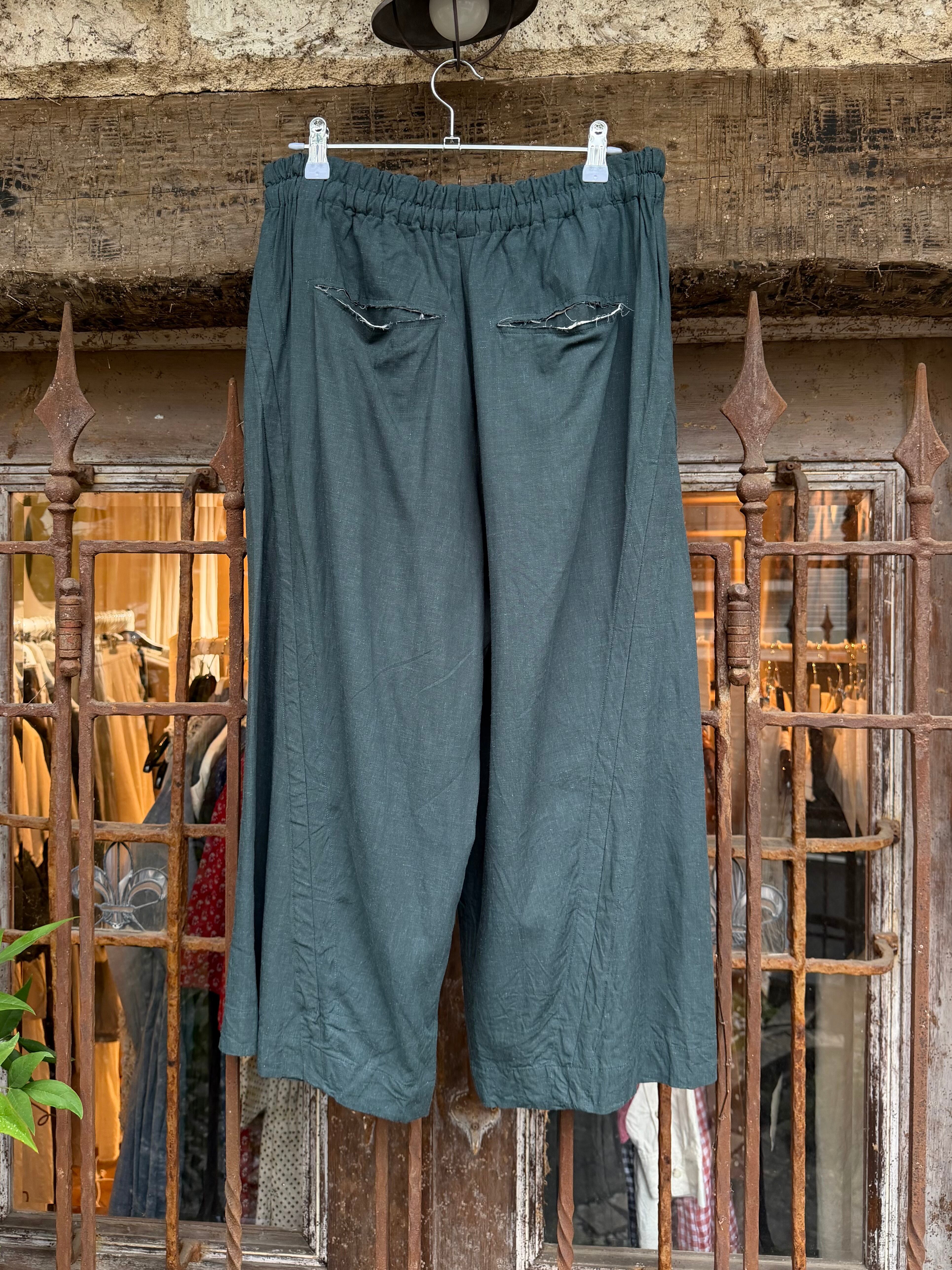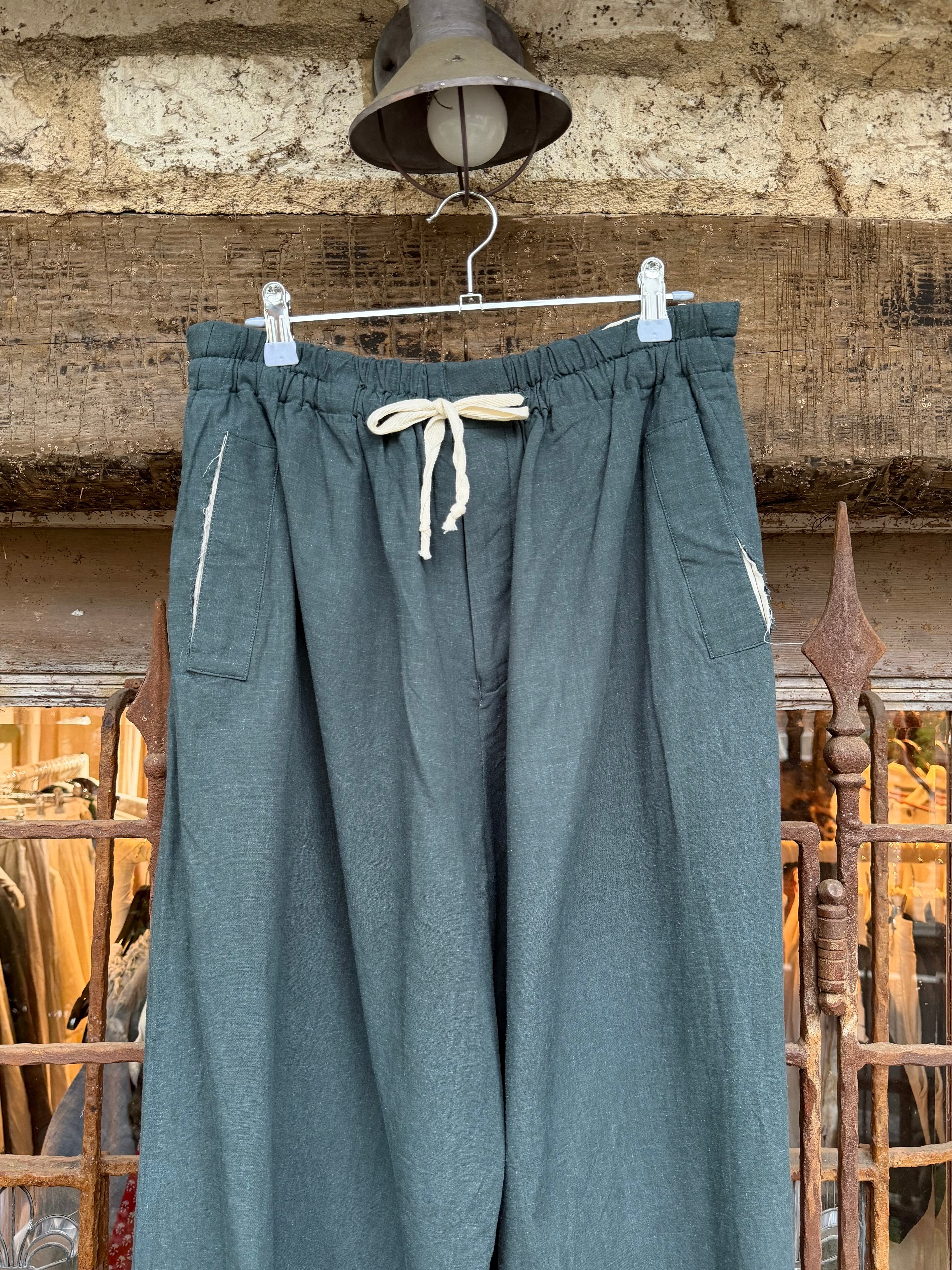 商品番号:26s24bggpgn カラー:GREEN サイズ:2 ウエスト:36.0cm 股上:39.0cm 股下:50.5cm わたり幅:37.5cm 裾幅:32.0cm 素材 RAYON 70%、LINEN 30%